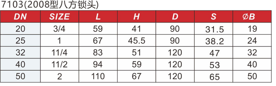 7103(2008型八方鎖頭) 磁性鎖閉限開球閥