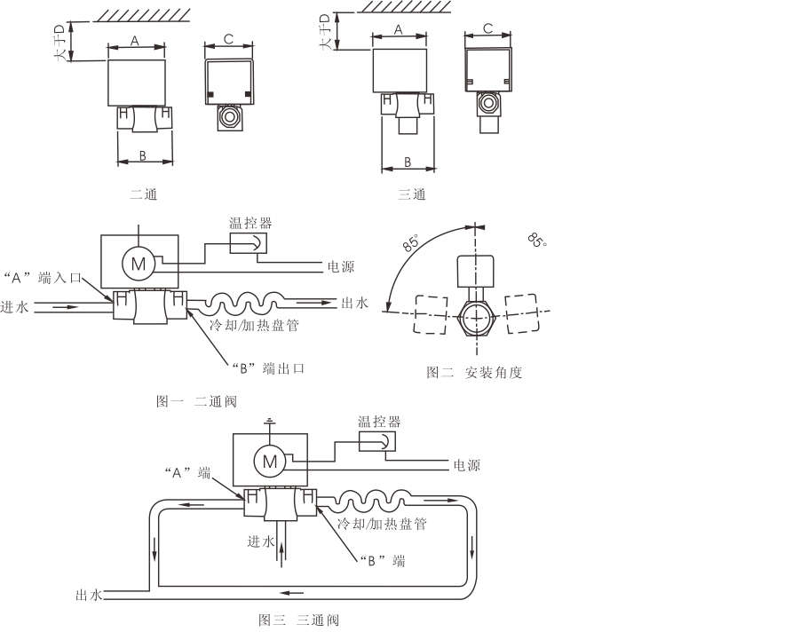 ◆注意:水流方向應(yīng)同閥體.上箭頭指向一致:安裝時,驅(qū)動器不得作為受力的支點。