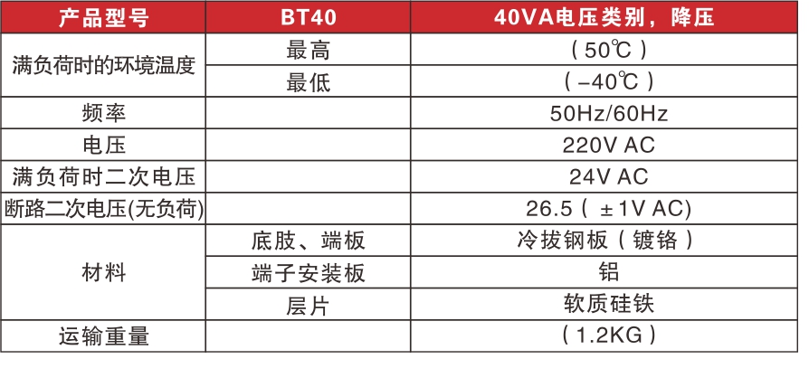 BT40系列變壓器用于馬達(dá)驅(qū)動(dòng)器,分級控制及其它低壓控制電路。在額定負(fù)荷時(shí)能提供額定的二次輸出系統(tǒng)中的部件正常工作。