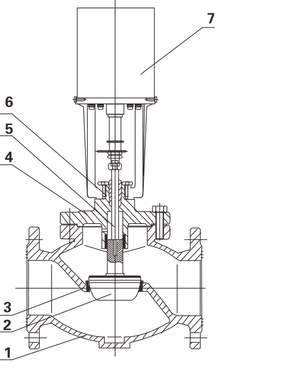 電動二通閥由閥體、閥蓋、閥座、閥瓣及陶桿等零件組成,具體結(jié)構(gòu)參見結(jié)構(gòu)圖。